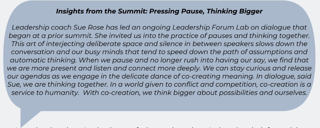 At the Leadership Forum Community, we aim to illuminate and share effective approaches – both established and emerging – so that they can be more widely used and adapted to advance conscious leadership and shape a more sustainable and thriving world for all.