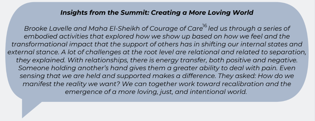 Intentional action: At the heart of change is action. Action that is informed by awareness and guided by intention. Much leadership theory converges around the understanding that higher levels of leadership aim toward greater inclusion and integration. We seek to create thriving for all because we recognize that we are interdependent. Great leaders, such as Martin Luther King Jr., Nelson Mandela, Mahatma Gandhi, Ellen Johnson Sirleaf, and Jacinda Ardern, worked to enact inclusive change. MLK offered that we must hold each other’s interests: “Love is creative, understanding goodwill for all men. It is the refusal to defeat any individual.”