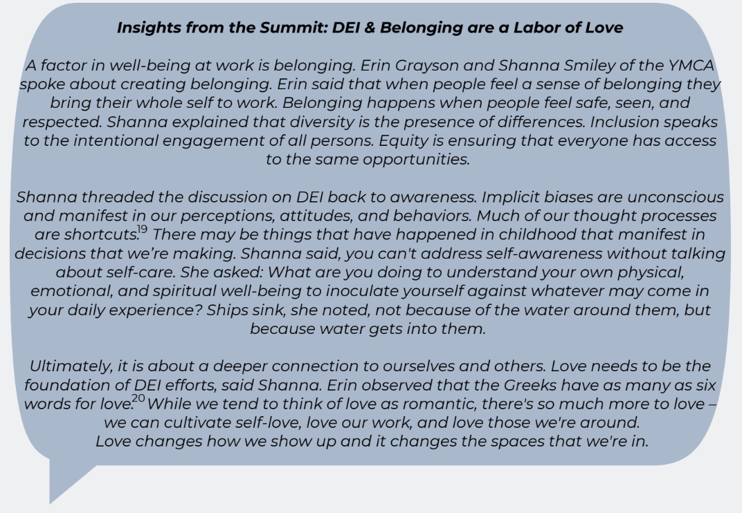 biases. We are over-connected and under-related. When we have direct experience with others, we find that our perception changes. This applies to people in organizations and communities. Spending time with people who we don’t know and learning their stories changes how we think and feel about them. It changes our commitment to them. It fosters a sense of mutual belonging – when we appreciate what is common to us, we can be better prepared to value what makes us different. We understand that our futures are bound together.