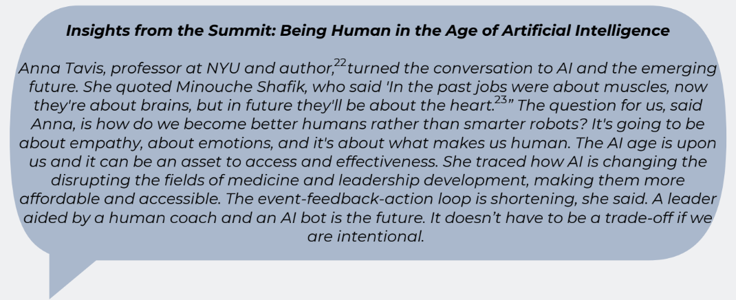 There are many effective approaches that can be gleaned from across sectors and human wisdom around the world. In Southern Africa, the tradition of Ubuntu calls us to acknowledge our unique dignity and value as individuals as well as that we all are part of interdependent collectives. The rapid adoption of AI into all facets of work and life will call us to shift our approaches but stay true to our values and intentions.