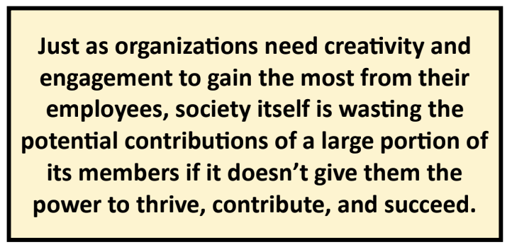 On the flip side, unless we give all people the means and power to thrive, we are wasting the value that those individuals could bring to society. There is also the cost of supporting a population that is less healthy and less productive.